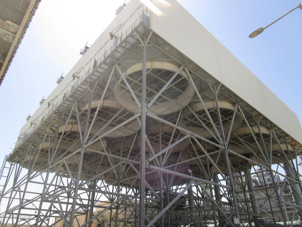 Each section of Air-Cooled Condensers (ACC) is designed by our engineers to enhance performance, and respect cost and constructability. Our engineers design them with optimized key sections and equipment to guarantee a maximized efficiency according to our client’s criteria for balancing capital and operating costs. The steam flows from the turbine into a steam duct and several manifolds to reach the fin tube bundles. ACC are designed in streets sitting on a steel leg system (under structure) raised to allow proper air intake into the forced draft modules of A-shape steel frames supporting fin tube bundles. Once condensed, the steam is collected by gravity into a condensate tank located underneath or in the close vicinity of the ACC. The efficiency of the steam condensation process is guaranteed using appropriate and reliable vacuum units. ACC guarantee the complete system and undertake integral studies related to the ducts and manifolds, the steel leg system and the pipe work and other special studies as appropriate.